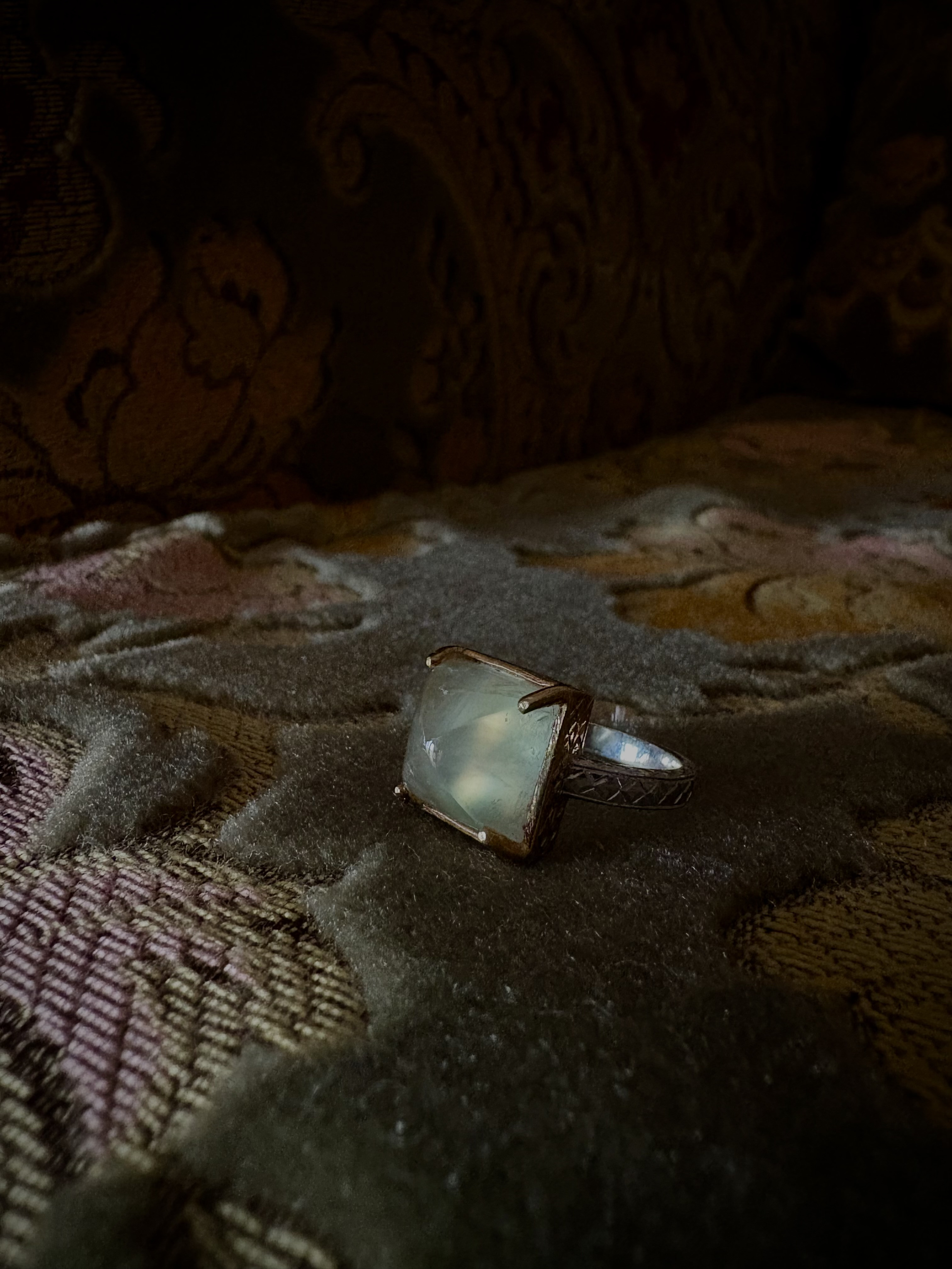 ちなみにたくさんの方が気になってご試着くださった1枚目の写真のシュガーローフカットのプレナイトリング。残念ながら皆さまサイズ合わずで、アトリエに一緒に帰りました。