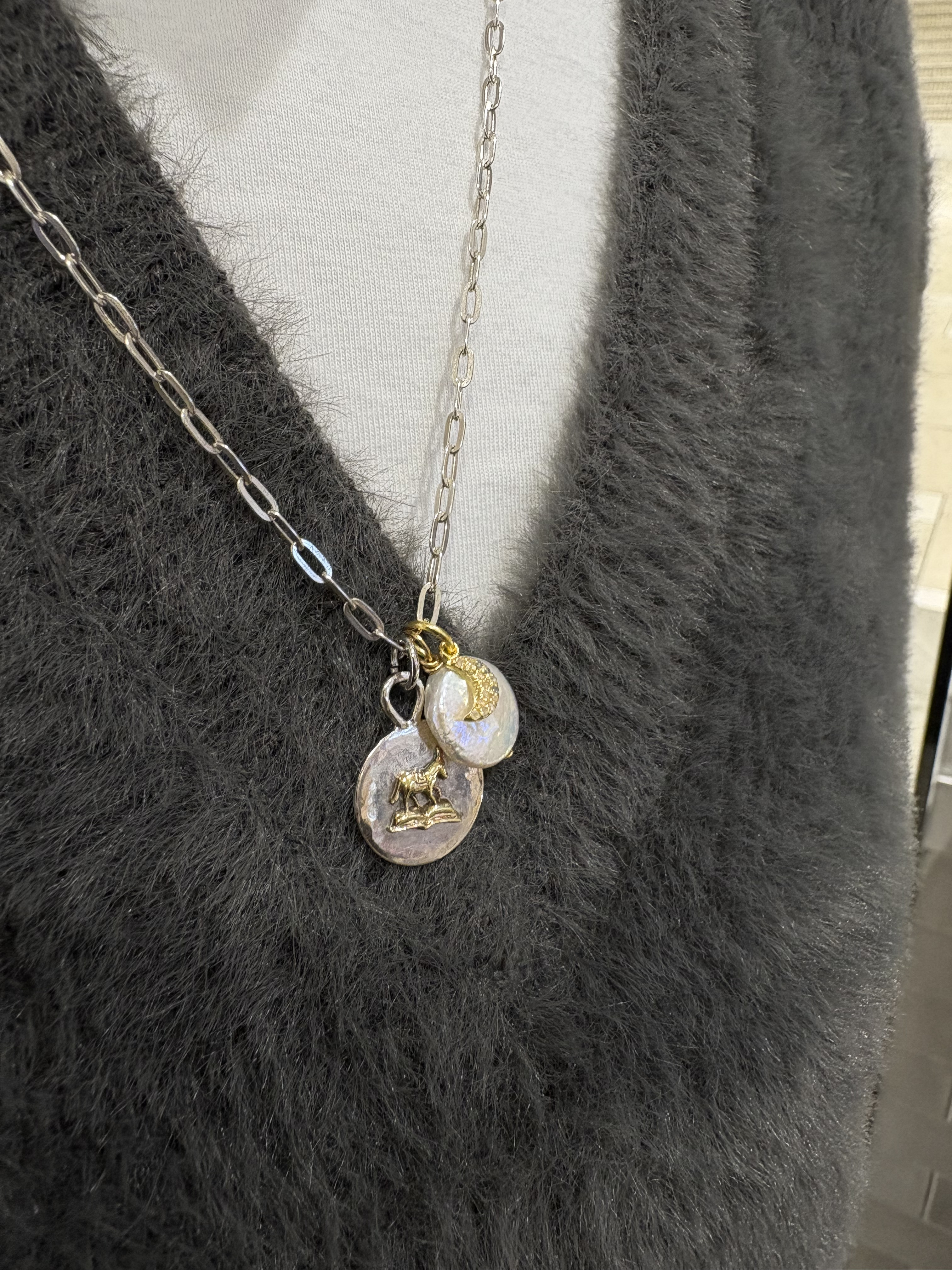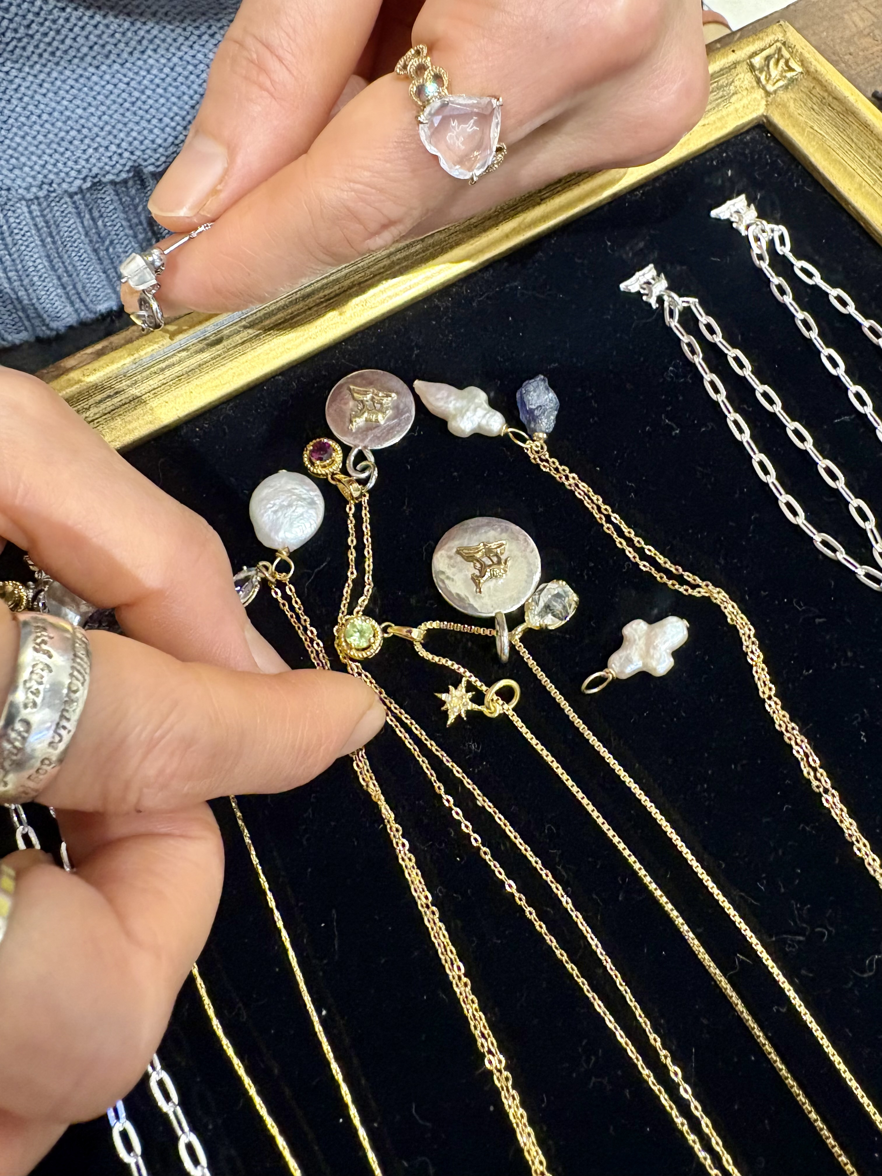 「こんなのあったら楽しいかな」と、今回はじめてご用意した、じゃらじゃら付け足しチャームネックレスは、