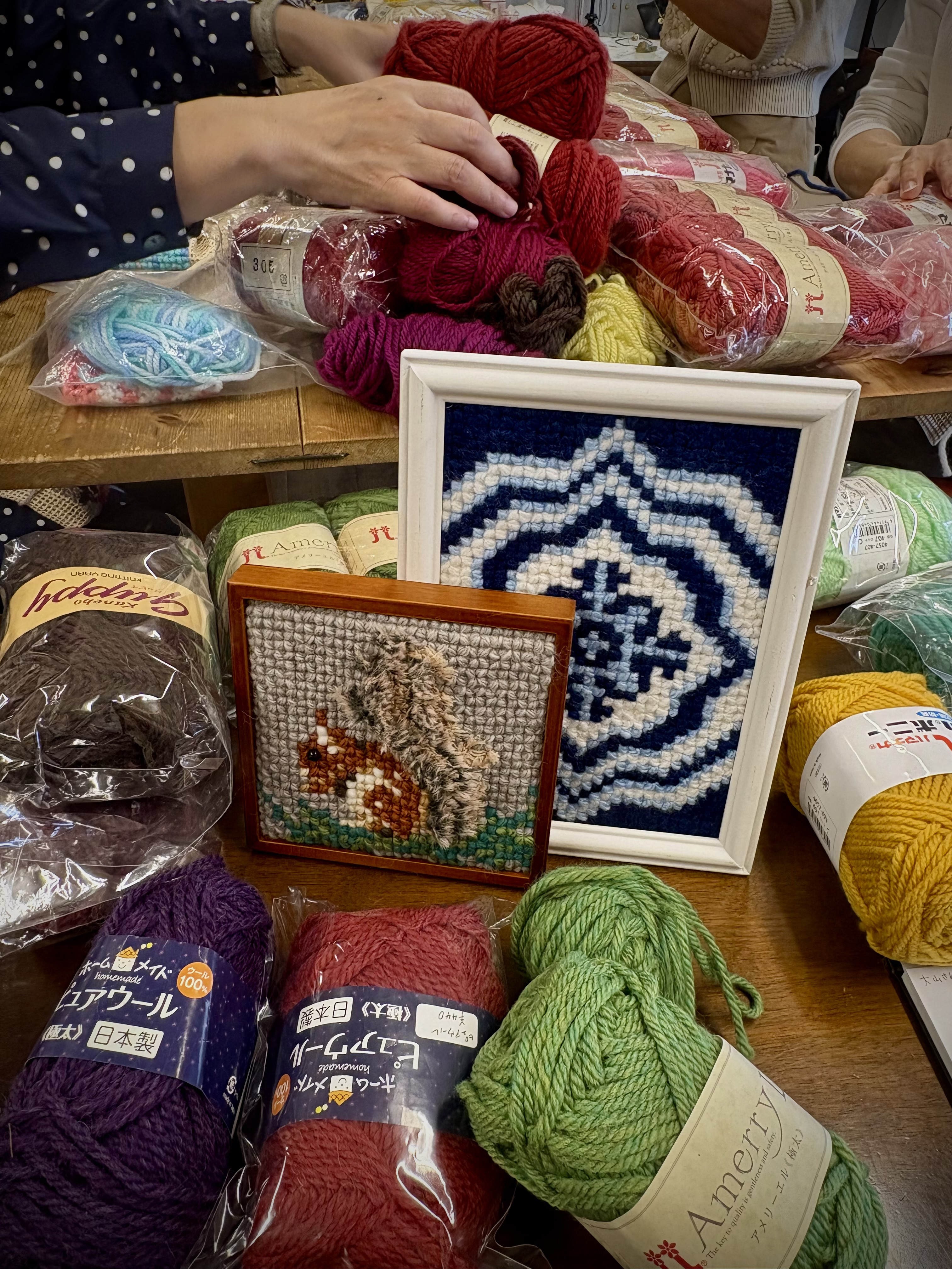 完成までにはお時間(2時間くらい?)がかかりますが、材料はもちろん毛糸針もお持ち帰りいただけますので、作り方を覚えるまで頑張っていただければ、おうちで仕上げていただけます。