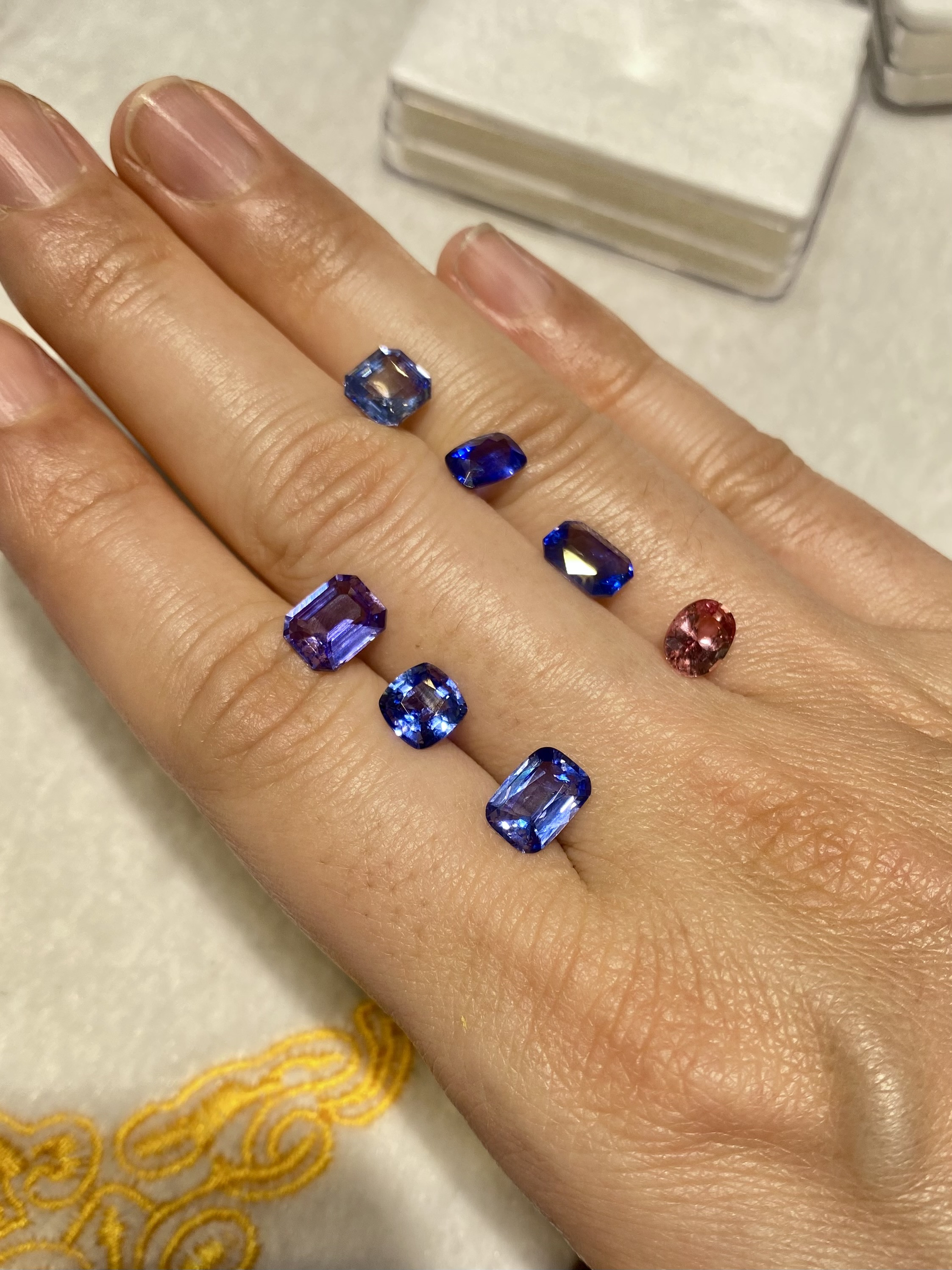 それはもう、たくさんのサファイアを指に載せましたよね。最後のお写真がその1枚ですが、実際はもっと😁