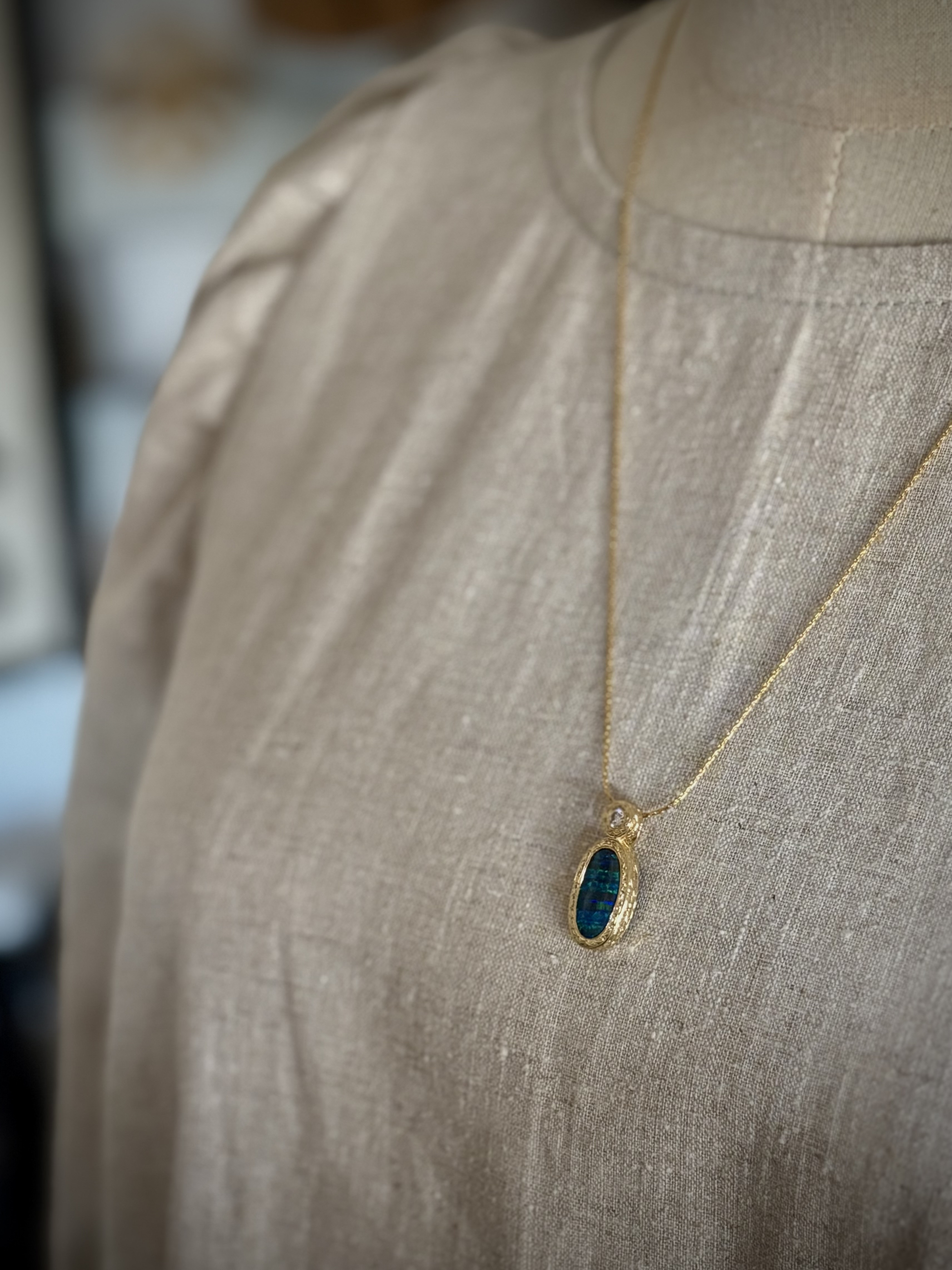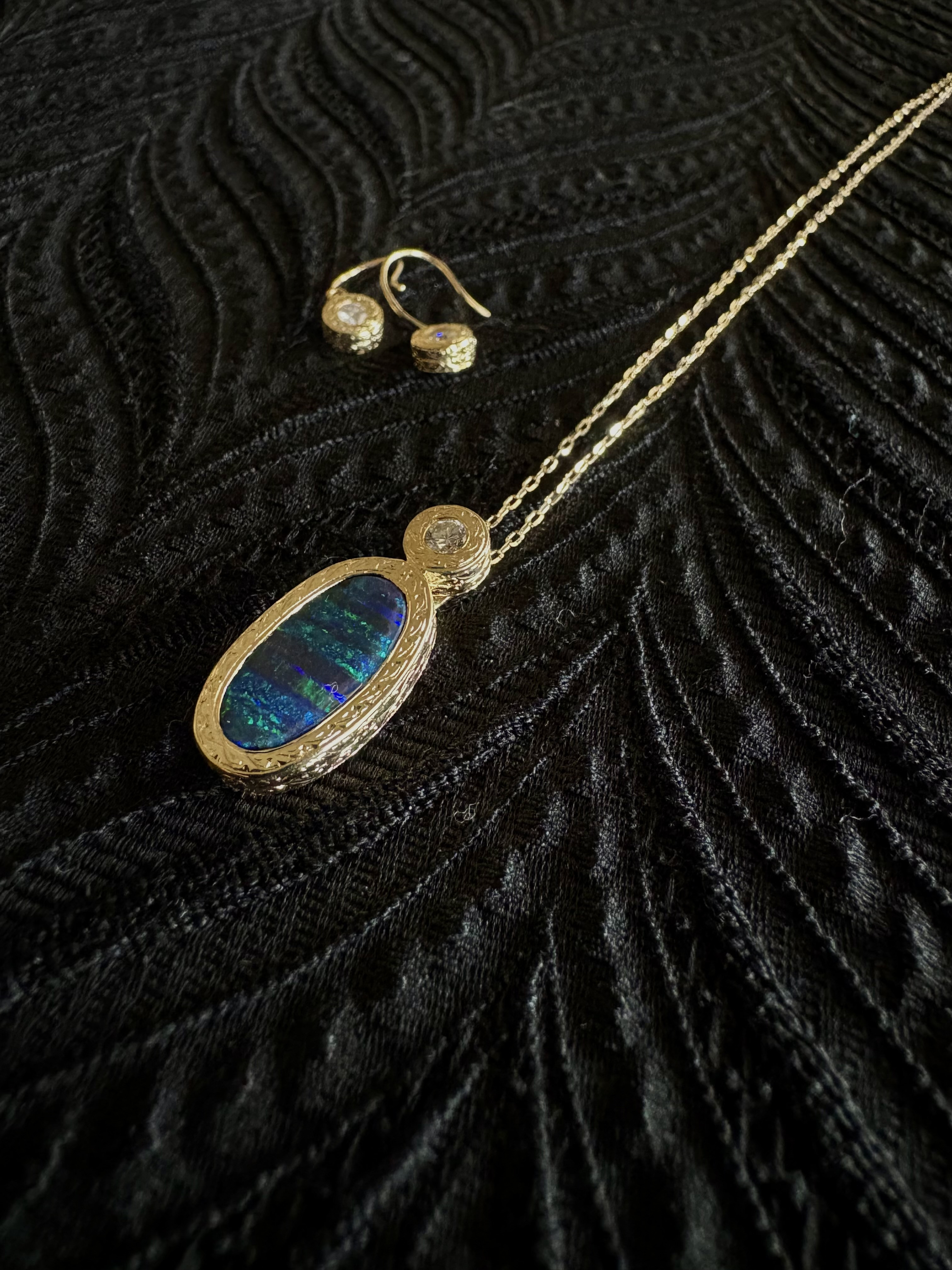 お持ち込みのオパールとダイアでペンダントを作らせていただきました。