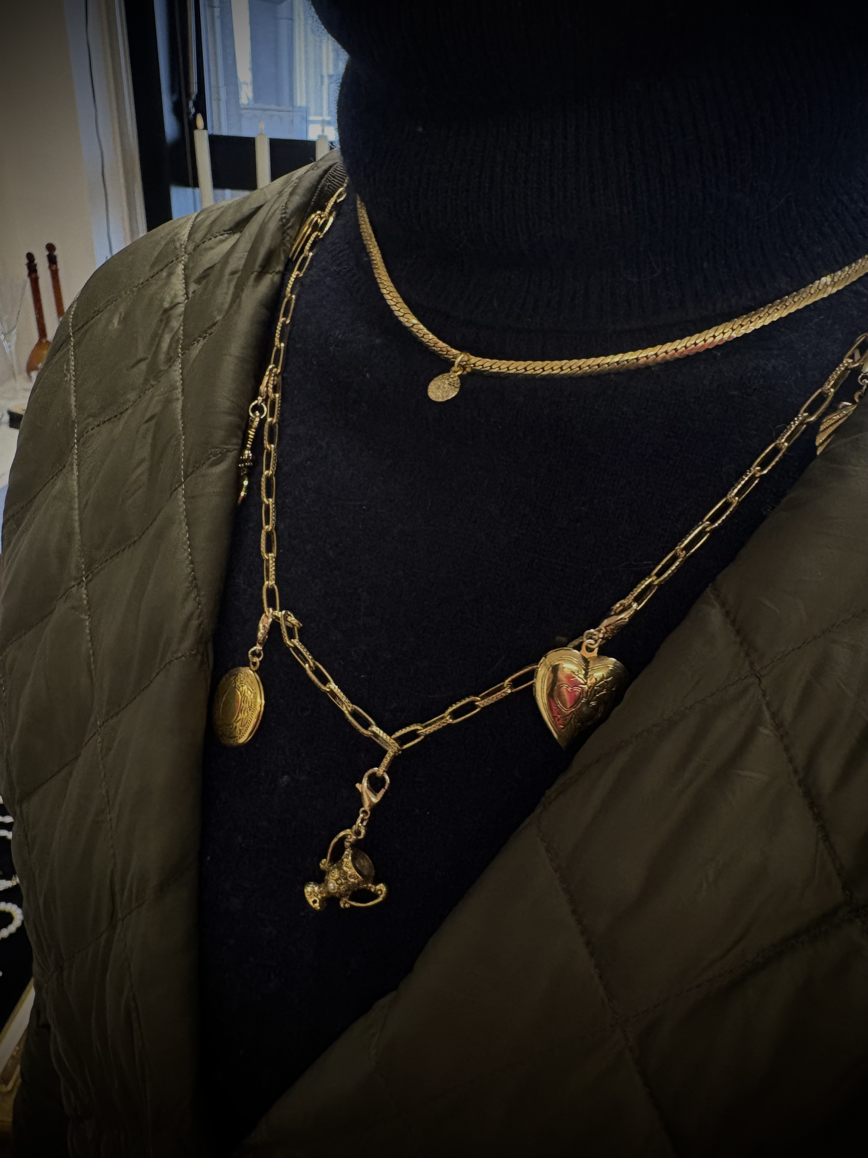 とっても喜んでいただいて、実はこれも見て欲しい、と翌日お持ちくださったのは、等間隔にロケットやチャームがたくさんついたネックレス。かわいい😍