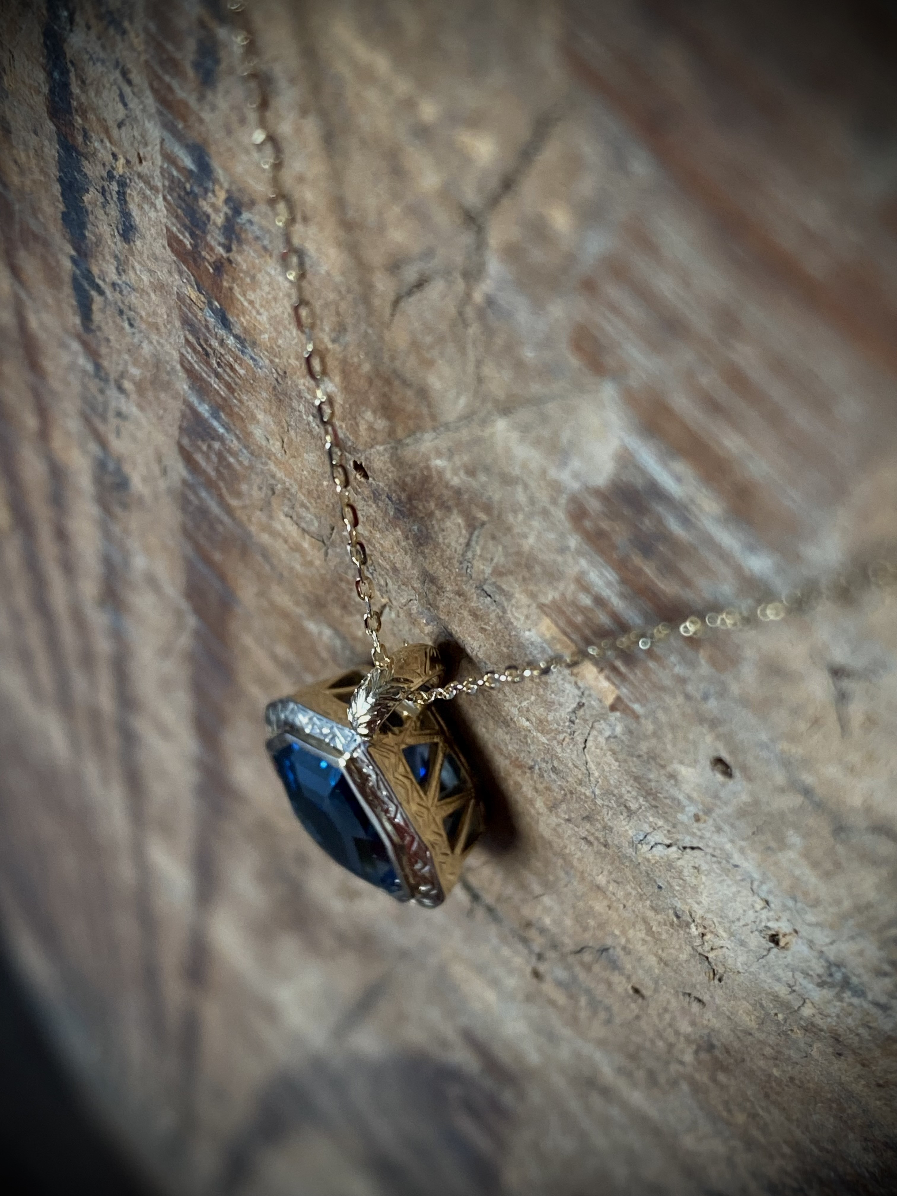 展示販売用に製作したネックレスでしたが、凝った雫型のシェイプも、たっぷり入った彫りも、横から見たときの透かしも、とても気にいってくださいました。