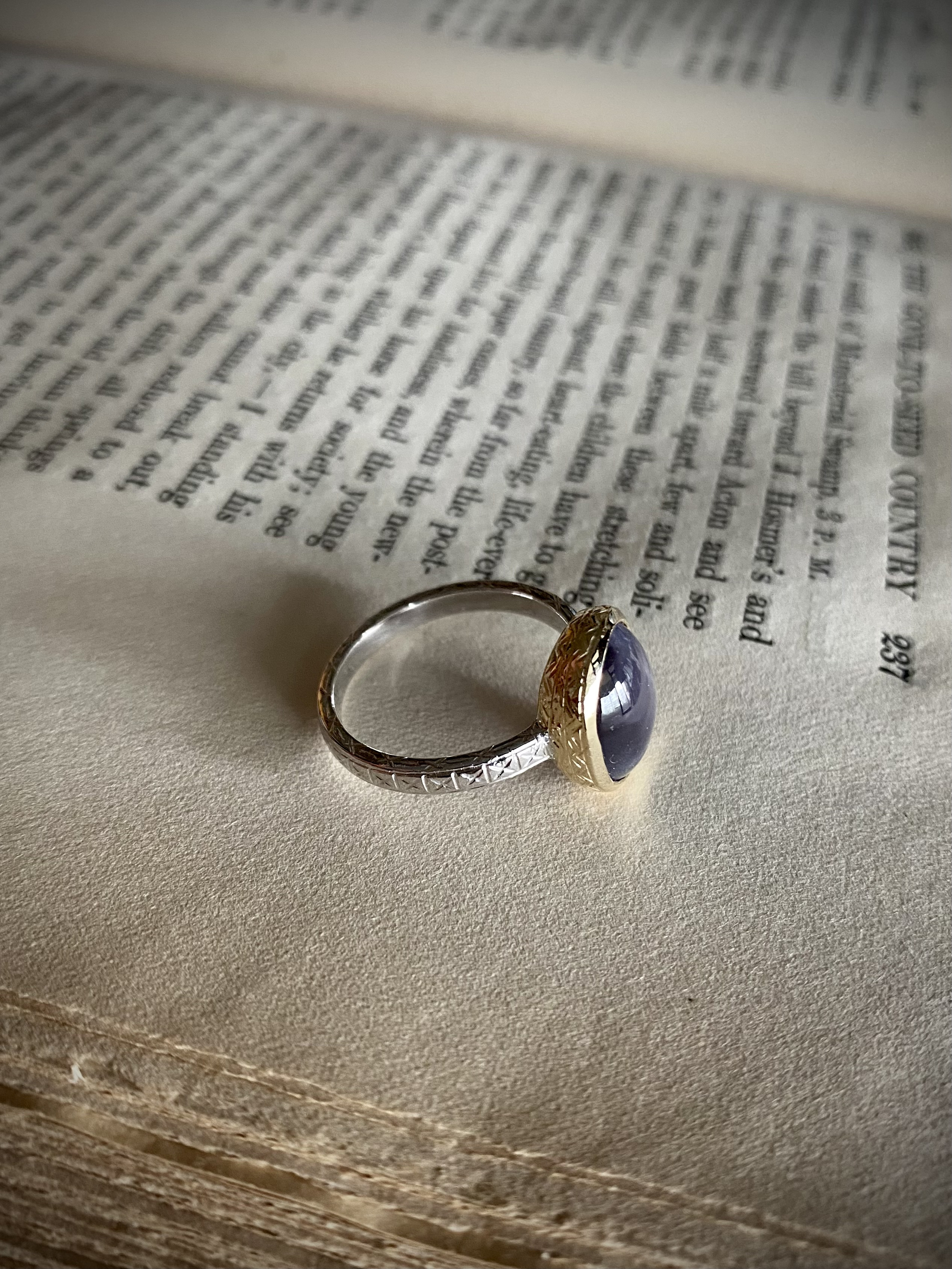 ふとバイオレット、ふとブルーを宿すグレイッシュなスターサファイア。